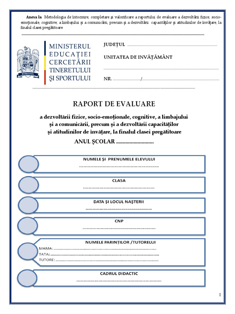 Raport Evaluare Clasa Pregatitoare