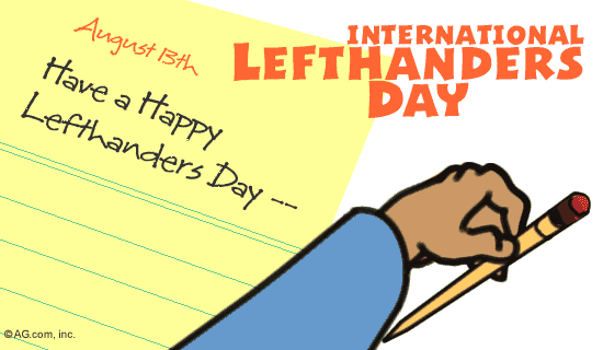 ziua internaţională a stângacilor se celebrează anual la 13 august. În fiecare an, în data de 13 august, este sărbătorită, la nivel internaţional, ziua stângacilor, cu scopul sensibilizării opiniei publice cu privire la dificultăţile şi frustrările cu care se confruntă stângacii în viaţa de zi cu zi. Anual, la 13 august se sărbătorește la nivel internațional ziua internațională a stângacilor. ziua internaţională a stângacilor se celebrează anual la 13 august. În trecut, se spunea că a fi stângaci este un lucru rău și deseori era asociat cu rebeliunea, homosexualitatea, criminalitatea sau obiceiurile „murdare".